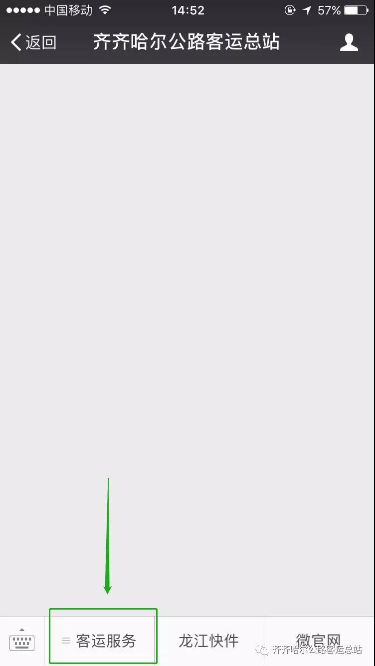 1.在微信里打開“齊齊哈爾客運總站”公眾號